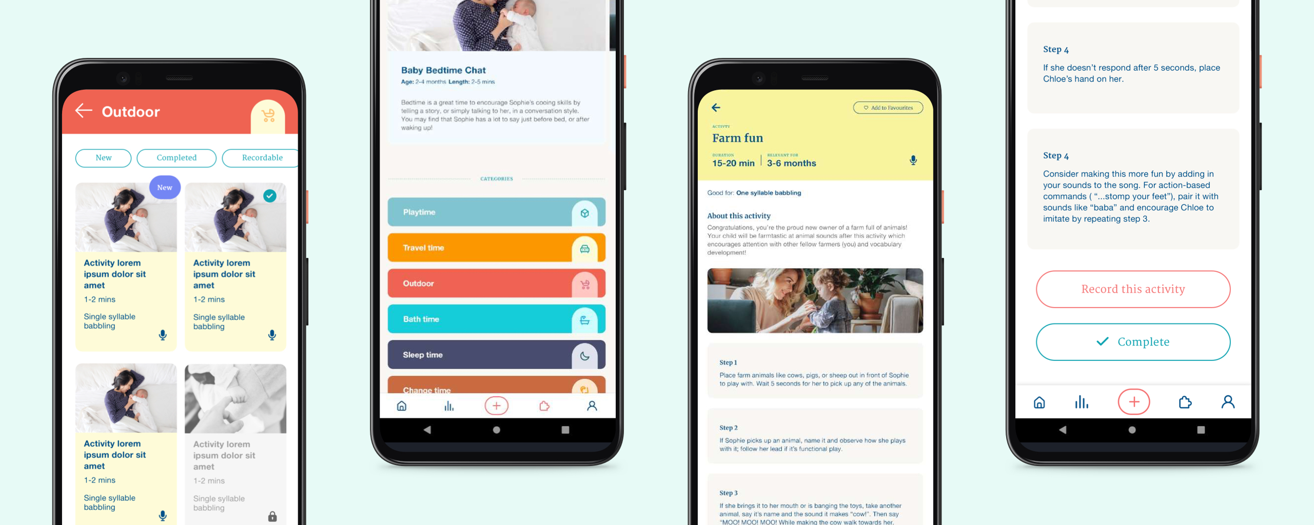 Our Speech Language Pathologists designed some bite-sized activities that are perfect to be integrated into the app; with built-in recording, parents can record while practicing with their babies, and the app will analyze and generate results on the spot, this will then be added to their babies' milestones.