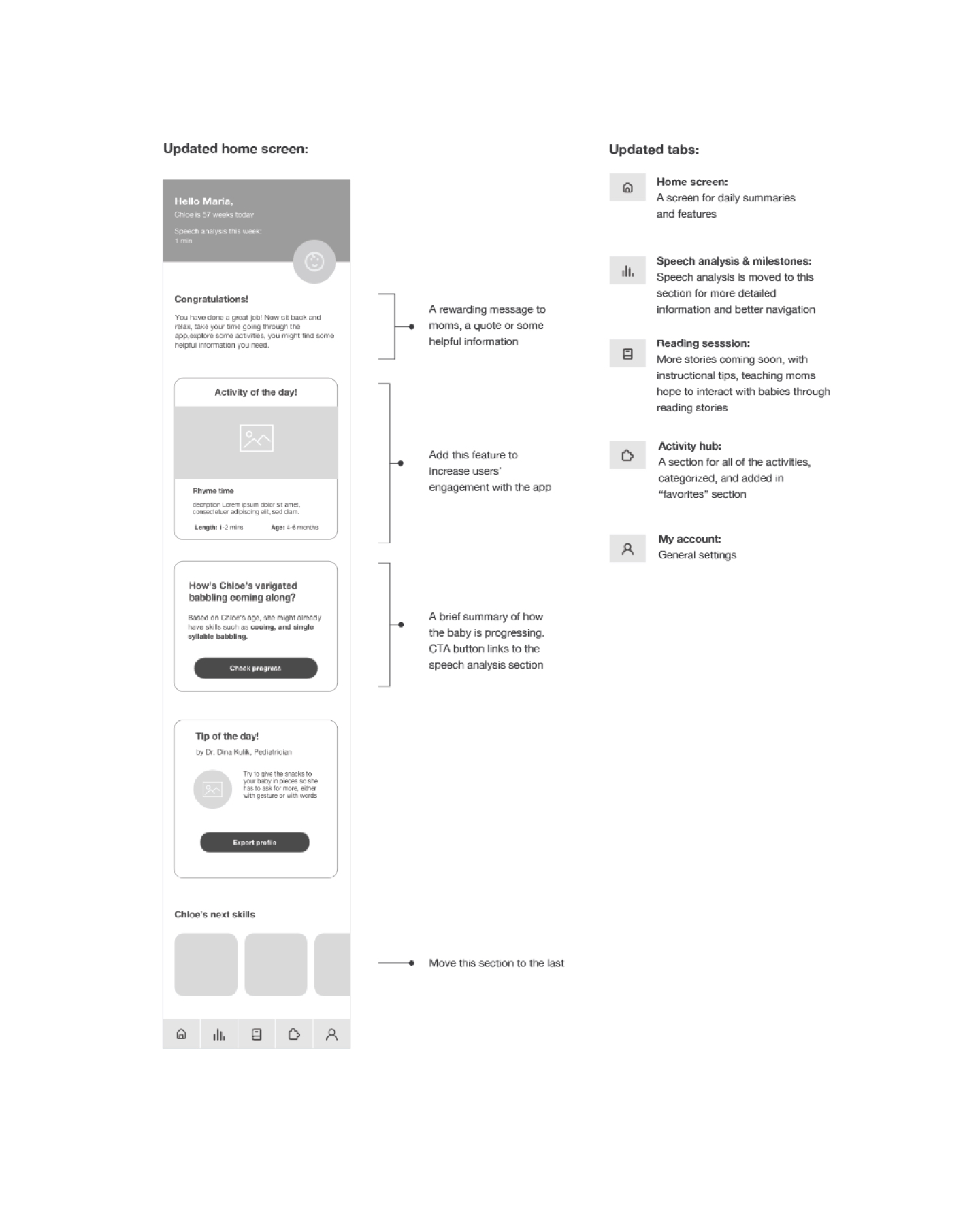 One of the concerns we have is how to increase returning rate, without a clear goal it's difficult to motivate parents to keep coming back and track their babies' speech development, parents are usually super busy, unless they're very concerned about their babies' speech delay, most likely this app will end up collecting dust in the corner of their app drawer.