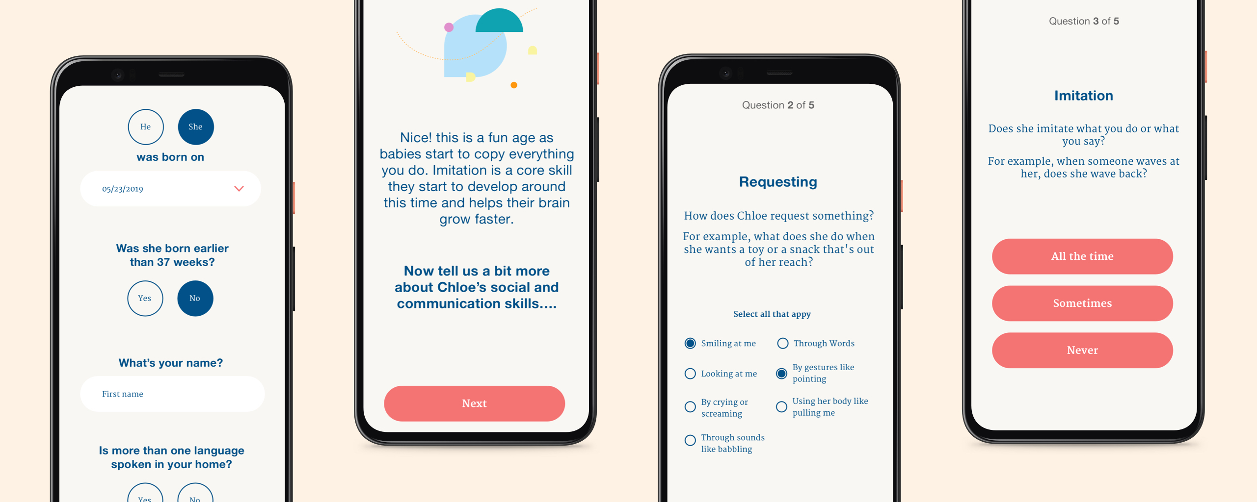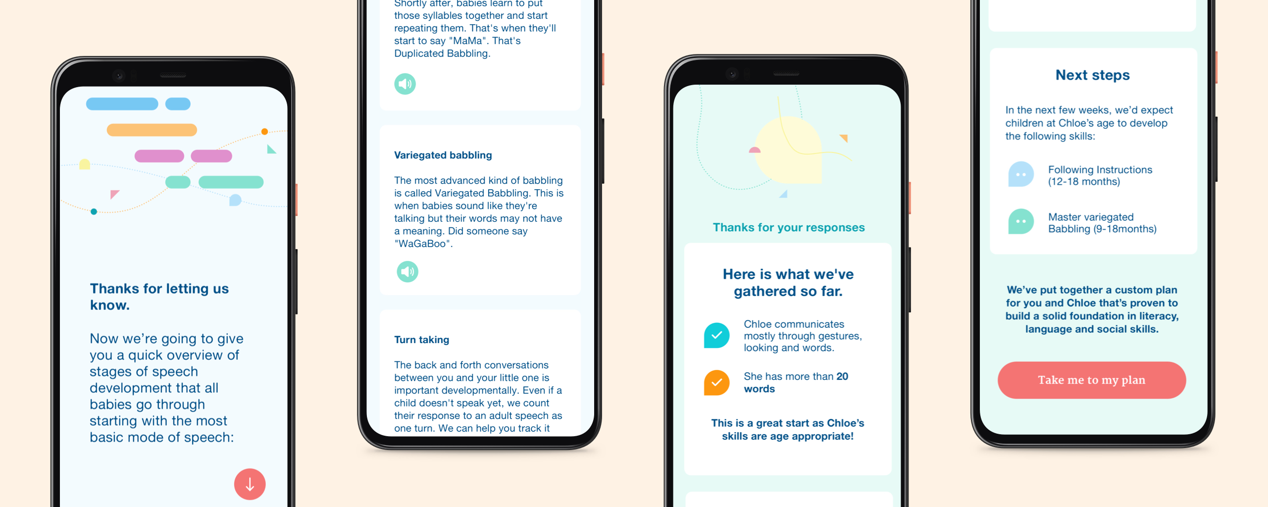 After several rounds of testing, and the results from ethnographic research, the biggest challenge we had was that most parents didn't know what the result was, they understand what the chart was telling them, but they didn't know what it meant to them, whether or not their babies were having speech delay was still very vague for them. Our approach to keep the answers rather vague to avoid any legal issues was creating more questions to our users