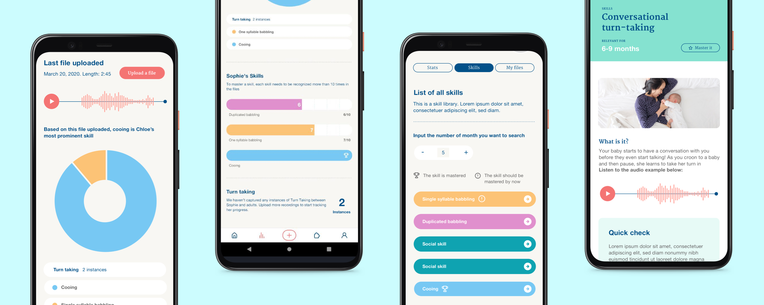 The original idea of this app is very simple and straightforward, we want an app that tracks a baby's speech development, by doing so, a user uploads (or records on spot) an audio or video file to the app, our voice ai technology would then analyse the audio and output a report that shows the baby's speech information. The information included some key speech milestones in speech & language development, which are Cooing, Single Syllable Babbling, Duplicated Babbling, and Variegated Babbling.