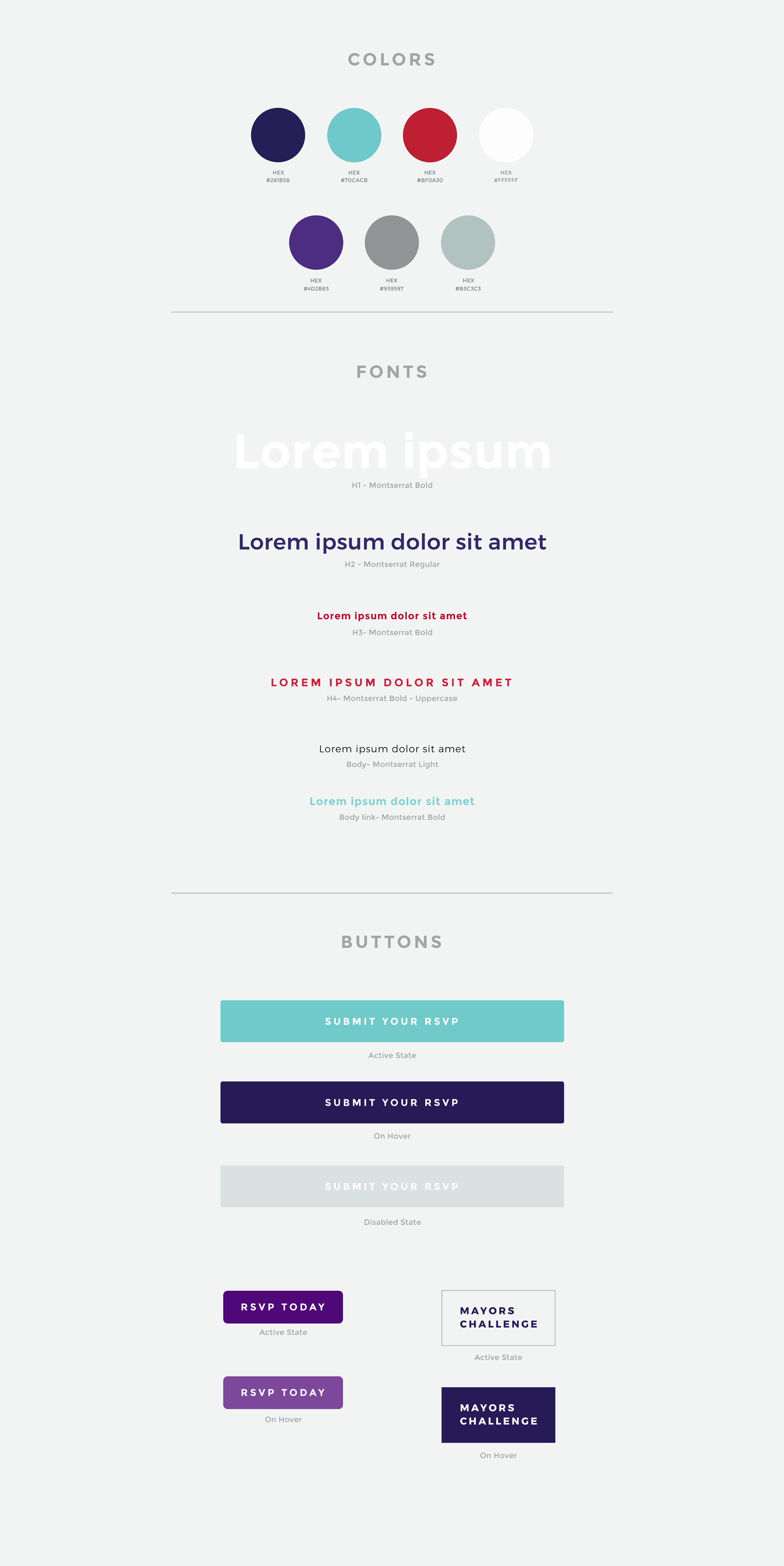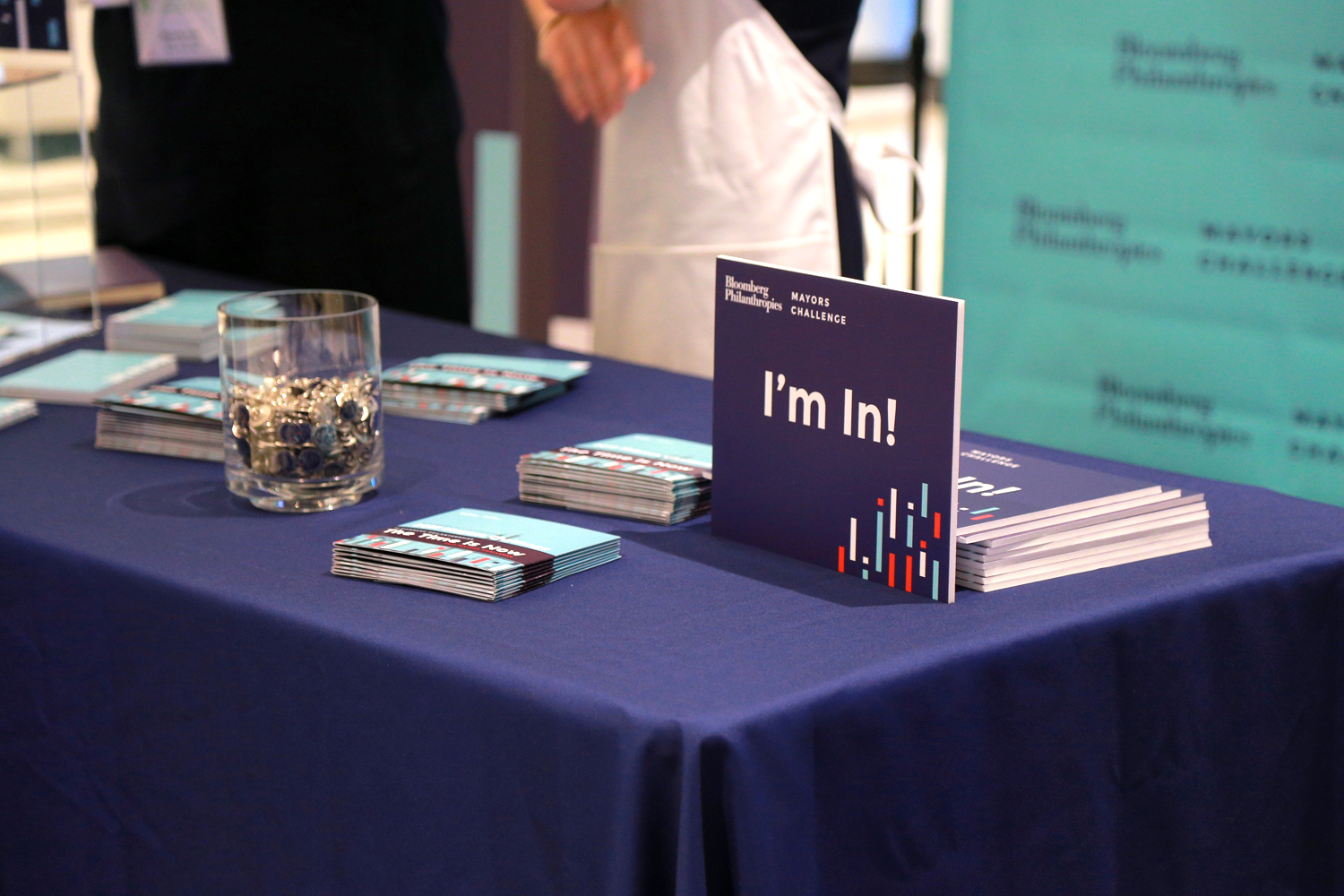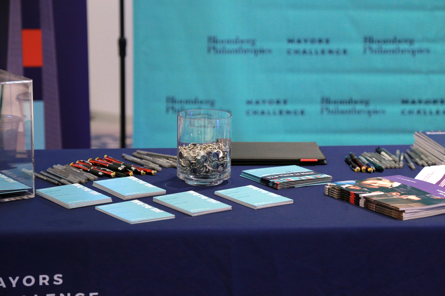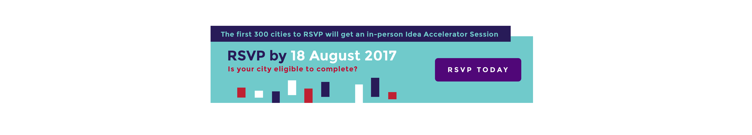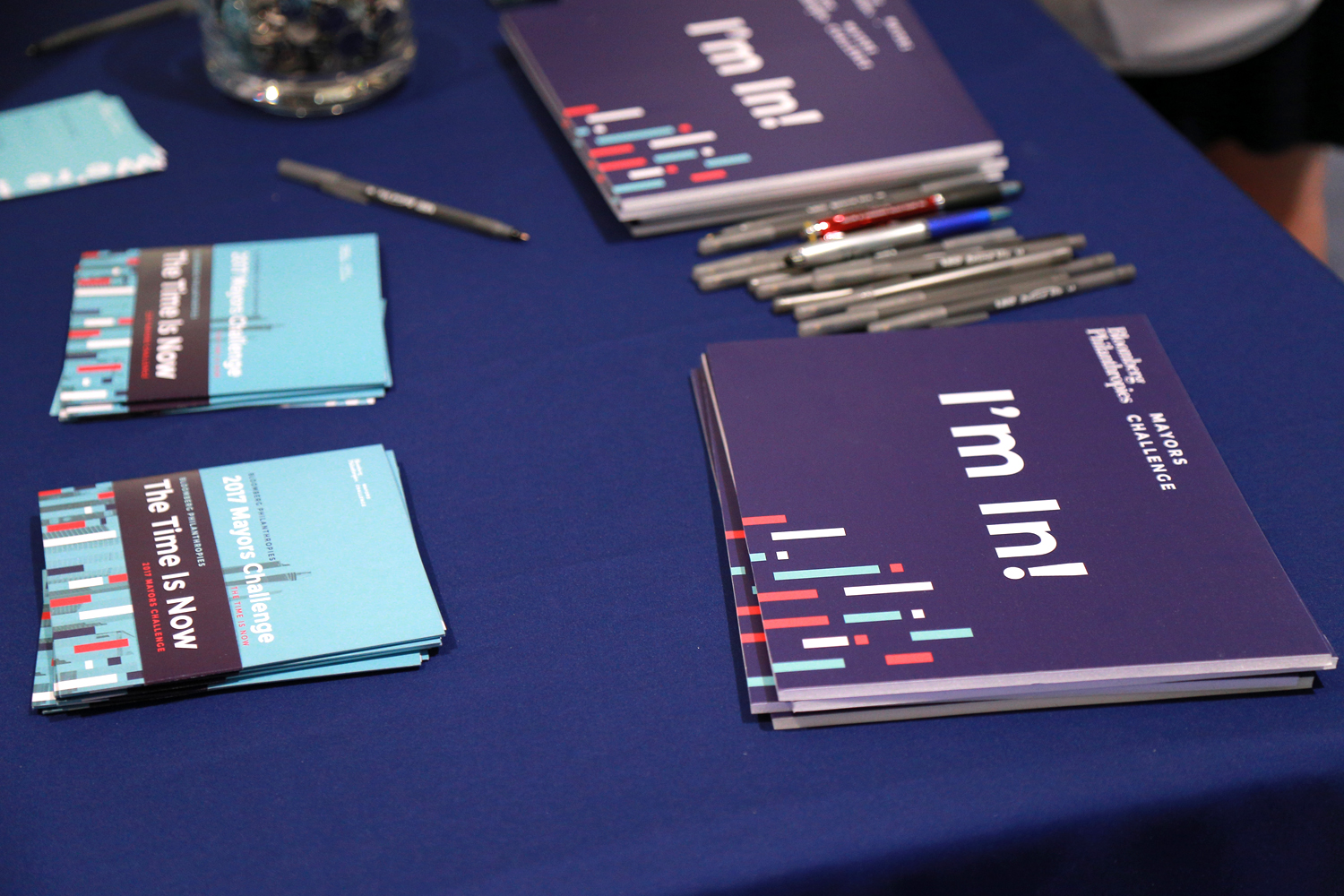 The 2017 Mayors Challenge is taking place in the United States. With the notion of "urgency" and "change", calling out for mayors who are willing to participate, innovate, and to bring their cities to a newer level. Using a modernized color palette of the America, we also incorparate the iconic skyline from the previous years, but give it a more abstract and futuristic style. Visual elements are also being used throughout all event pieces and the upcoming program assets.
